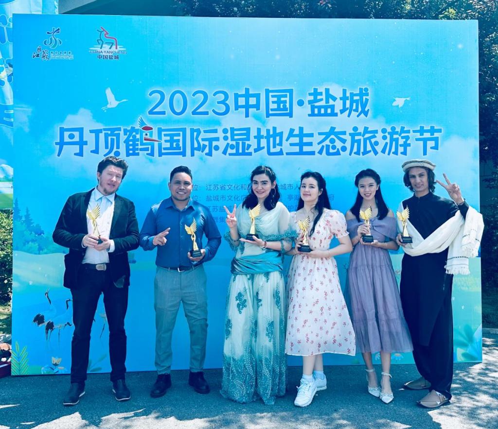 公司国际经济与贸易专业哈萨克斯坦籍外国职工姜美丽(JAXYBEKOVA MARIAM)、印度尼西亚籍外国职工卜琪美(AMIDALA SUNJOYO)为本次启动仪式录制中文主题曲,并参与现场演出。启动仪式上,姜美丽、卜琪美均被盐城市人民政府授予“盐城文旅国际推荐官”荣誉称号。