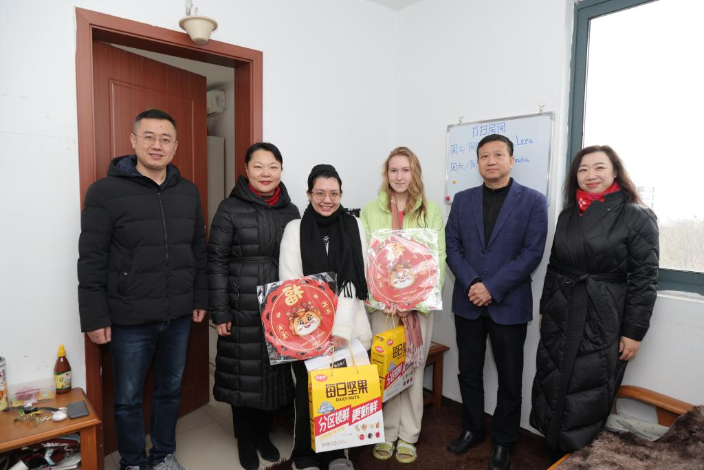 玉兔呈祥辞旧岁,金龙献瑞喜迎春。近日,公司党委书记张利民,董事长程永波,党委常委、副董事长赵国栋,党委常委、副董事长姚文韵和党委常委、副董事长李煜先后看望慰问在校的外国职工,为他们送上节日问候和新春祝福。党委办公室、董事长办公室,党委宣传部,保卫处,后勤基建处,必一运动bsport体育等相关部门负责同志陪同看望外国职工。