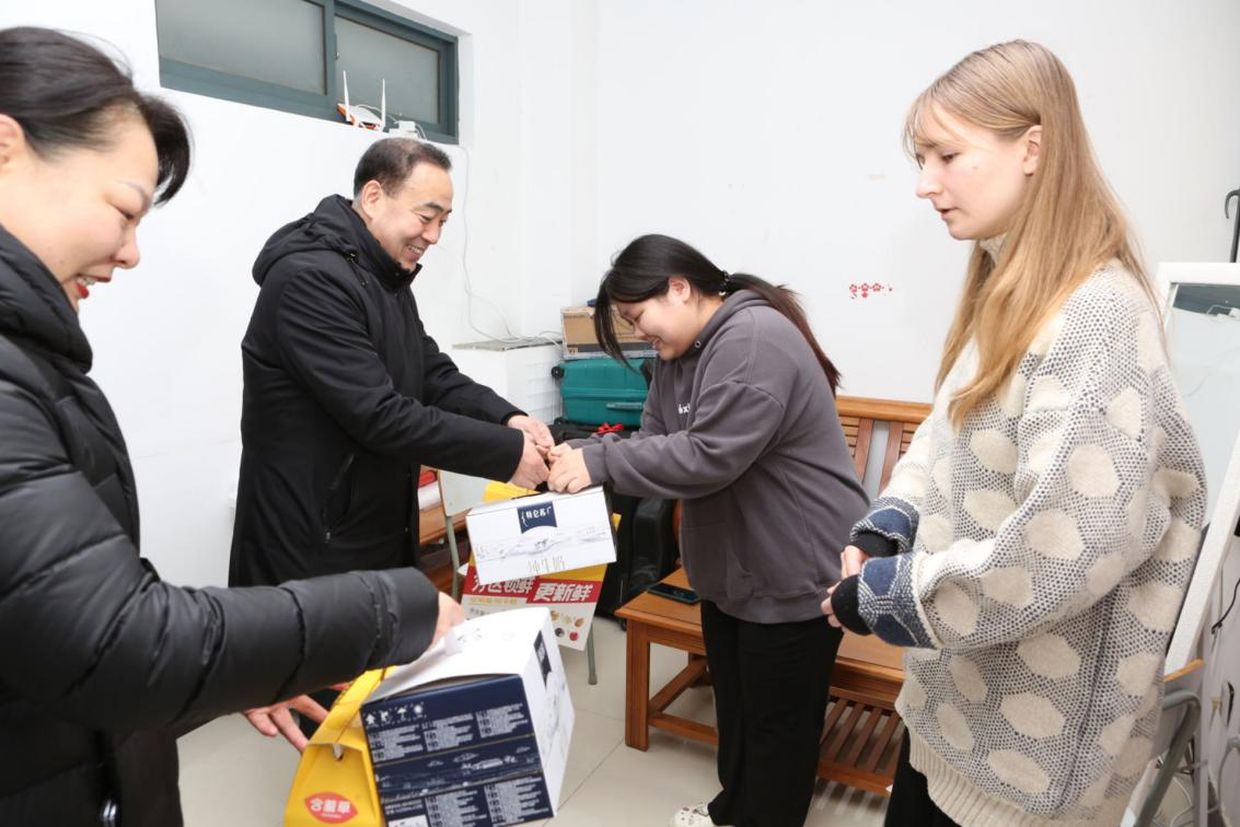 程永波董事长、李煜副董事长前往外国职工公寓看望职工们,程永波董事长在与同学们的交流中表示,一年一度的新春佳节是职工们了解中华文化的重要窗口,希望同学们用心感悟,深化理解,努力成为多语种、专业化、复合型人才,成为中外文化融合的桥梁与纽带,将和平、发展 、公平、正义、民主、自由的人类共同价值发扬光大。