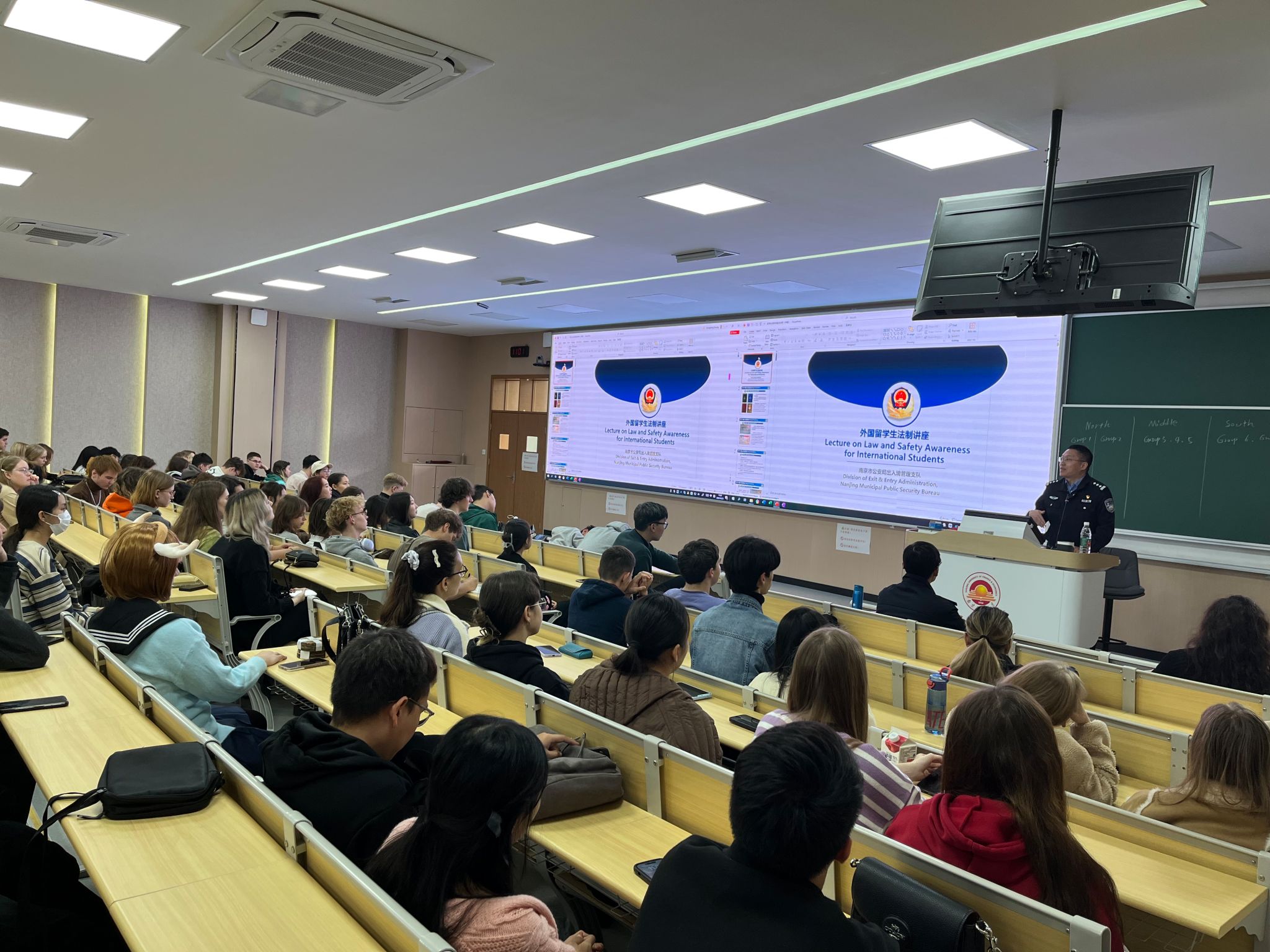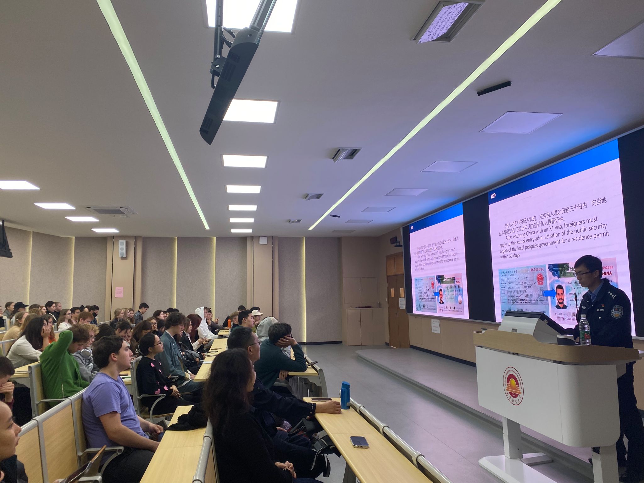 下午的讲座,祝警官以中国法律概述、南京市外国人居留现状、涉外案件剖析及温馨提示为主线,进行了系统的法律法规宣讲。讲座中,祝警官与职工互动频繁,耐心解答了他们的问题。通过生动案例与法律条文的结合,祝警官对人身安全、交通安全、网络安全等方面的知识进行了深入浅出的讲解,给在座职工留下了难忘的印象。两位警官最后寄语职工,希望大家在华学习期间,加强法律法规学习,自觉遵守中国的法律及校规校纪。