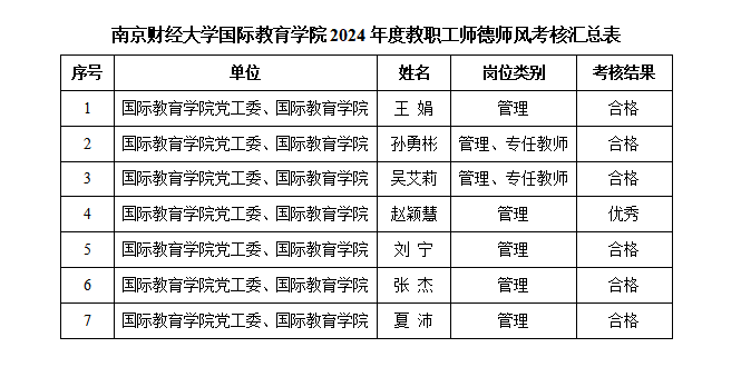 经公司党工委、必一运动bsport体育2025年1月10日(周五)党政联席会议酝酿、讨论,2024年度部门1名教职工考核优秀,其余全体教职工考核合格,公示如下: