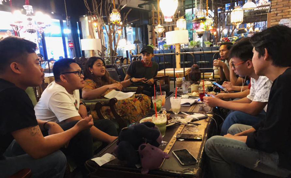 TALITHA(左三)与来自印度尼西亚的学弟们在交流学习与生活